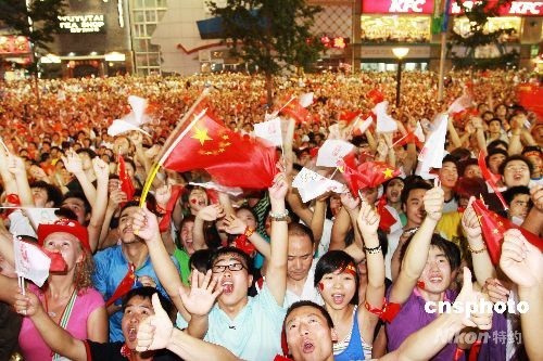 圖:萬人齊聚北京王府井為奧運狂歡