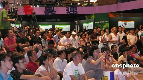 八月八日,舉世矚目的北京奧運(yùn)會(huì)壯麗登場,成千上萬的臺(tái)灣民眾在家中、餐館或街頭大屏幕下,準(zhǔn)時(shí)收看晚八時(shí)零八分開始的奧運(yùn)開幕式。有媒體形容這是一場“視聽饗宴”。圖為臺(tái)北市京華城購物中心內(nèi),民眾席地而坐觀看開幕演出。中新社發(fā) 曾嘉 攝