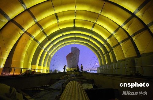 圖為33米長、23米寬、15米高的氣肋式膜結構建筑的火炬房子。中新社發(fā) 佟偉 攝