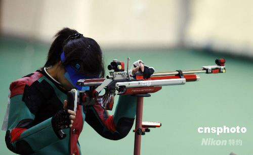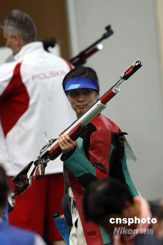 8月9日,北京奧運(yùn)會開賽的第一天,女子10米氣步槍決賽在北京射擊館進(jìn)行。中國選手杜麗無緣金牌,捷克選手卡特日娜·埃蒙斯獲得首枚金牌,同時也是北京奧運(yùn)會產(chǎn)生的首枚金牌。中新社發(fā) 盛佳鵬 攝