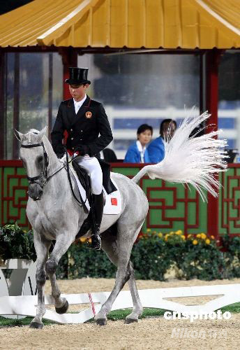 八月九日晚,在香港沙田奧運(yùn)馬術(shù)賽場上,三項(xiàng)賽的盛裝舞步夜間賽事開賽。奧運(yùn)會歷史上第一位參加馬術(shù)比賽的中國選手華天輕駕他的愛駒,優(yōu)雅登場。為期十一天的奧運(yùn)馬術(shù)賽九日在香港沙田賽場拉開戰(zhàn)幕,中國馬術(shù)隊和中國香港馬術(shù)隊均首次亮相奧運(yùn)馬術(shù)賽場。 中新社發(fā) 洪少葵 攝