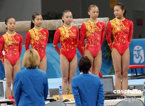 8月10日上午,北京奧運(yùn)會(huì)女子體操團(tuán)體資格賽在北京奧林匹克公園內(nèi)的國(guó)家體育館舉行,由世界冠軍程菲領(lǐng)銜的中國(guó)隊(duì)由平衡木比賽開始向團(tuán)體冠軍沖擊。中新社發(fā) 任晨鳴 攝