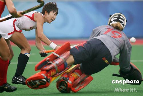 8月10日,中國女曲在奧運會女子曲棍球小組賽首場比賽中以3:0戰(zhàn)勝西班牙隊。圖為中國隊在進(jìn)攻中。 中新社發(fā) 武仲林 攝