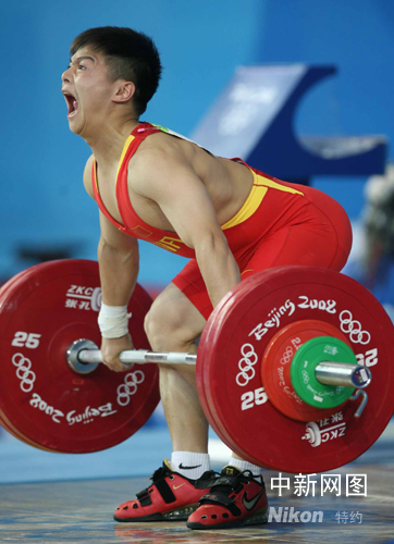 年僅十七歲的中國(guó)選手龍清泉在北京奧運(yùn)會(huì)舉重項(xiàng)目男子56公斤級(jí)的比賽中,勇奪冠軍。這是中國(guó)軍團(tuán)在本屆奧運(yùn)會(huì)上獲得的第六面金牌。中新社記者 武仲林 攝