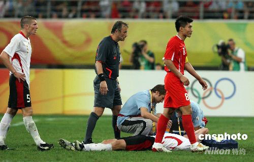 北京時(shí)間8月10日晚,奧運(yùn)男足賽第二輪打響。中國(guó)國(guó)奧隊(duì)在沈陽(yáng)迎戰(zhàn)比利時(shí)國(guó)奧隊(duì)。經(jīng)過(guò)90分鐘的激戰(zhàn),中國(guó)國(guó)奧隊(duì)0:2不敵對(duì)手,比賽中兩名中國(guó)國(guó)奧隊(duì)員吃到紅牌被罰下場(chǎng)。 中新社發(fā) 張宇 攝