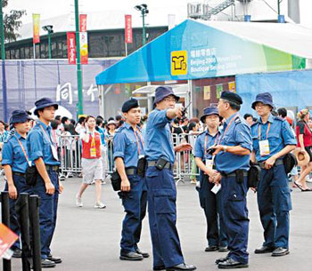 10日沙田馬術(shù)賽場都明顯加強保安,除了入口廣場每隔十步即有民安隊、警員和保安巡邏,看臺下更有十多名保安駐守出入口,而且有較多保安站崗,連警員巡邏也較頻密,有警員帶同警犬在廣場穿梭,而城門河畔也有警員巡邏,保安明顯較9日嚴密。