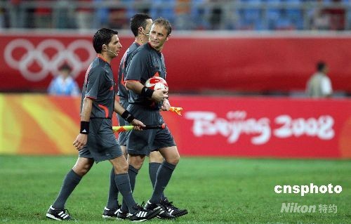 比賽結(jié)束后,裁判退場(chǎng)。中新社發(fā) 張宇 攝