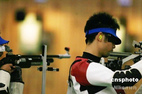 圖:朱啟南參加奧運會男子10米氣步槍比賽