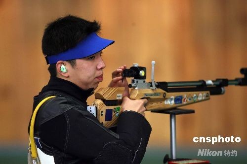 圖:曹逸飛在奧運會男子10米氣步槍預賽中