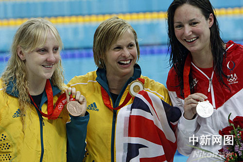 8月11日,北京奧運(yùn)會女子100米蝶泳決賽,澳大利亞選手莉斯貝絲·特里克特以56秒73獲得金牌。中新社發(fā) 杜洋 攝