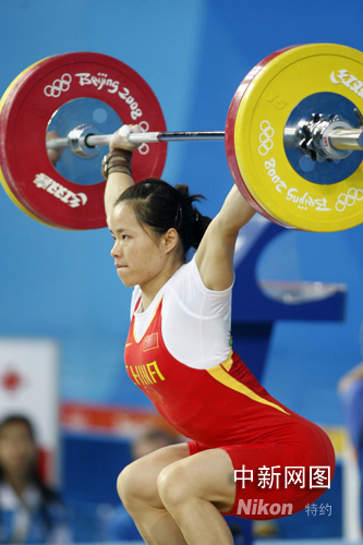 8月11日,北京奧運會開賽以來的第三天,女子舉重58公斤級的決賽在北京航空航天大學(xué)體育館拉開戰(zhàn)幕。雅典奧運會冠軍中國選手陳艷青獲得北京奧運會舉重女子58公斤級金牌,成功衛(wèi)冕,為中國代表團贏得第八枚金牌。中新社記者 盛佳鵬 攝