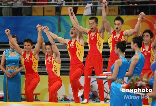 8月12日,在國(guó)家體育館舉行的男子體操團(tuán)體決賽中,中國(guó)隊(duì)以總分286.125分力壓老對(duì)手日本隊(duì),領(lǐng)先第二名7分多的優(yōu)勢(shì)奪得體操男子團(tuán)體的冠軍,為中國(guó)體操隊(duì)贏得了開門紅,這是中國(guó)代表團(tuán)在本屆奧運(yùn)會(huì)上的第10枚金牌。 中新社發(fā) 武仲林 攝
