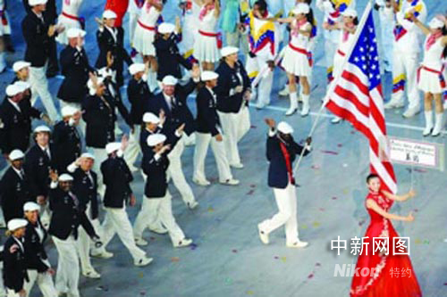 圖為周旦妮帶領(lǐng)美國隊(duì)入場。