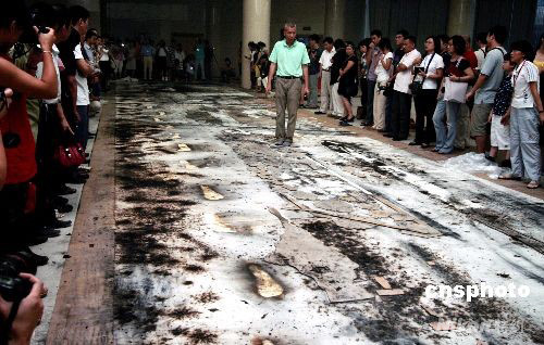圖為蔡國強站在爆破畫上進行最后檢閱。