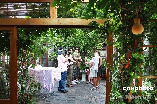 8月12日,北京百年四合院變身“奧運人家”,外國游客住四合院、品茗談天,體驗老北京生活。北京在奧運會期間共開設598戶“奧運人家”,可提供726間客房,能一次接待1000多名中外觀眾和游客。圖為將要上大學的首批美國學生來京觀看奧運會入住“奧運人家”。中新社發(fā) 鄭雄增 攝