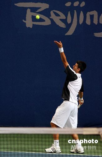 8月12日,網(wǎng)球男單第二輪爭奪中,大賽3號種子、塞爾維亞天才少年德約科維奇直落兩盤,以總比分2比0擊敗德國老將舒特勒,進(jìn)入下一輪。中新社發(fā) 王韶驊 攝