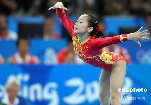 8月13日,北京奧運會女子體操團體決賽,中國體操隊的六名小姑娘創(chuàng)造歷史,以精彩的表現獲得總分188.900分,以領先美國隊2.375分的優(yōu)勢摘取金牌,這是中國首次奪得奧運會體操女團桂冠。美國隊186.525分獲得銀牌,羅馬尼亞隊以總分181.525獲得銅牌。中新社發(fā) 任晨鳴 攝