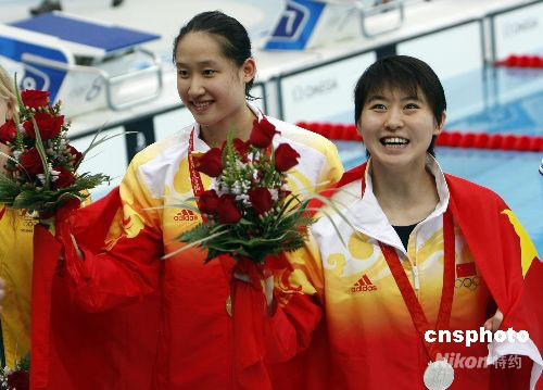 8月14日上午,中國(guó)19歲小將劉子歌以2分04秒18打破世界紀(jì)錄,獲得北京奧運(yùn)會(huì)女子200米蝶泳冠軍。另一名中國(guó)只有18歲的小將焦劉洋奪得亞軍。中國(guó)泳壇兩朵小花雙雙戰(zhàn)勝澳大利亞選手,奪金摘銀。 中新社發(fā) 杜洋 攝