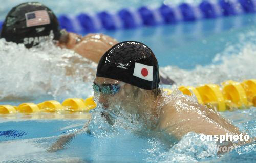 8月14日,在男子200米蛙泳決賽中,日本名將北島康介以2分07秒64的成績(jī)獲得冠軍并打破奧運(yùn)會(huì)紀(jì)錄,繼100米后再次衛(wèi)冕200米項(xiàng)目的金牌,成為蛙泳的雙冠王。 中新社發(fā) 杜洋 攝