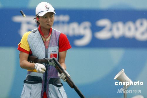 8月14日下午,北京奧運會女子飛碟雙向決賽在北京射擊場飛碟靶場舉行,世界杯總決賽冠軍中國選手魏寧無緣三甲名列第六。意大利選手基婭拉-卡伊內(nèi)羅通過單發(fā)決賽擊敗美國選手羅德-金伯莉和德國選手克里斯蒂娜-布林克爾,以93中獲得冠軍。 中新社發(fā) 盛佳鵬 攝