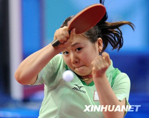 日本隊(duì)選手福原愛在比賽中。