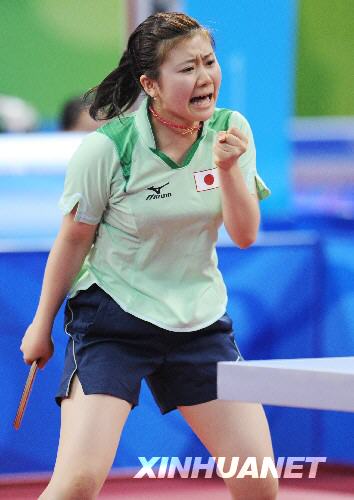 8月14日,在北京奧運(yùn)會(huì)乒乓球女子團(tuán)體項(xiàng)目小組賽第二輪比賽中,日本隊(duì)經(jīng)過艱難苦戰(zhàn)以3比2戰(zhàn)勝西班牙隊(duì)。日本隊(duì)主力球員福原愛兩次上場,一勝一負(fù)。新華社記者徐家軍攝