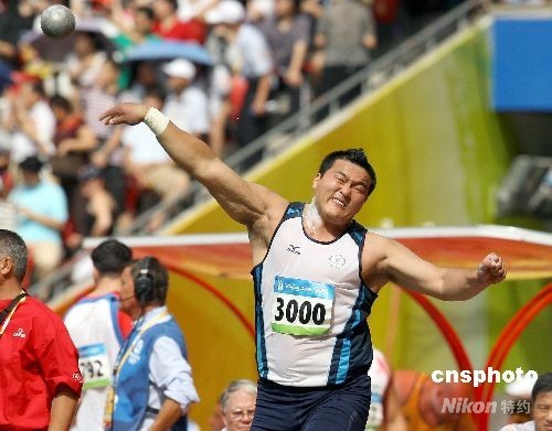 8月15日,北京奧運男子鉛球資格賽在國家體育場舉行,中華臺北隊張銘煌力拼前八強。中新社發(fā) CNAsports 攝