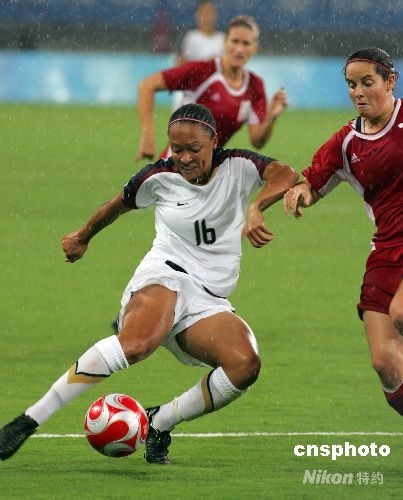 8月15日,北京奧運會女足,美國VS加拿大的比賽在上海體育場進行。最終,美國隊以2:1戰(zhàn)勝加拿大隊,挺進四強。中新社發(fā) 湯彥俊 攝