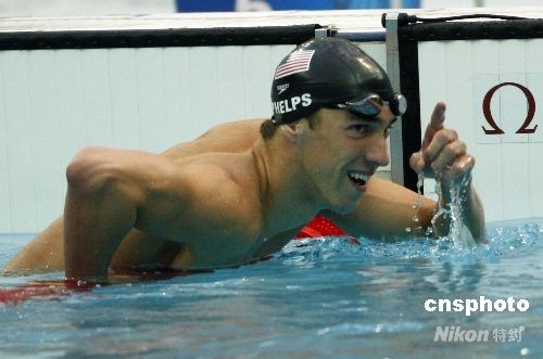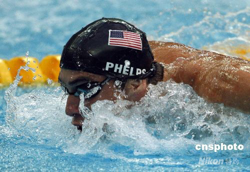 8月16日,北京奧運(yùn)會(huì)男子100米蝶泳決賽中,美國選手菲爾普斯以50秒58摘取其第七枚金牌,距離自己的奧運(yùn)會(huì)八金夢(mèng)想僅有一“金”之遙。 中新社發(fā) 杜洋 攝