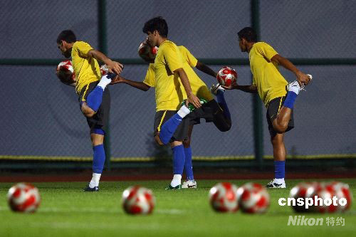 巴西國奧隊(duì)在訓(xùn)練中,像一群翩翩起舞的“小天鵝”。