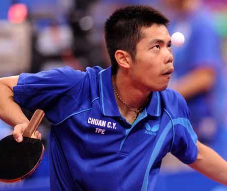 在男子乒乓球團體比賽中,中華臺北代表隊1比3敗給韓國。其中唯一得勝點由莊智淵獲得。(上圖)