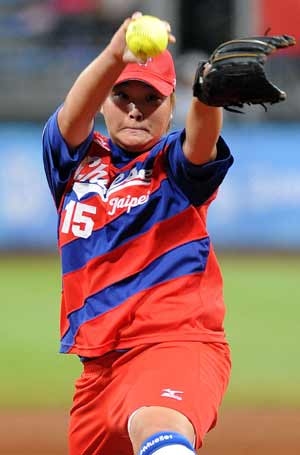 北京奧運女子壘球比賽中華臺北隊于14日晚間出戰(zhàn)委內瑞拉隊,投手闕明慧擔任救援,成功封鎖對手打擊。(下圖)