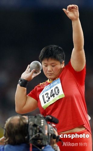 8月16日,中國選手鞏立姣無緣北京奧運會女子鉛球比賽獎牌。中新社發(fā) 盛佳鵬 攝
