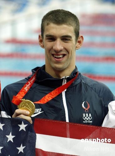 8月17日,美國隊(duì)獲得北京奧運(yùn)會(huì)男子4乘100米混合泳接力冠軍,至此,23歲的美國游泳運(yùn)動(dòng)員菲爾普斯不僅用8金刷新了單屆奧運(yùn)會(huì)金牌紀(jì)錄,而且還將個(gè)人所有奧運(yùn)會(huì)的金牌總數(shù)提高到了14枚,達(dá)成了他人難以超越的“世界紀(jì)錄”。中新社發(fā) 杜洋 攝