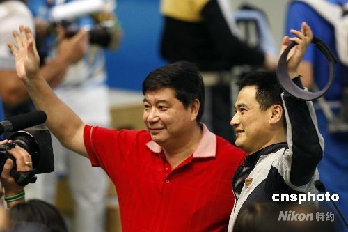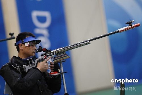 8月17日,男子50米步槍三種姿勢決賽在北京射擊館進行,中國選手邱健奪得金牌。8月17日,13:52分,男子步槍三姿第10輪邱健驚天逆轉(zhuǎn)得金牌。本來以為得到銀牌已經(jīng)是最好的結(jié)果,一直領(lǐng)先的美國選手埃蒙斯雖沒有像上一屆奧運會一樣脫靶,但是他最后一槍居然只打出了4.4環(huán),埃蒙斯又一次把冠軍送給了中國選手。中新社發(fā) 盛佳鵬 攝
