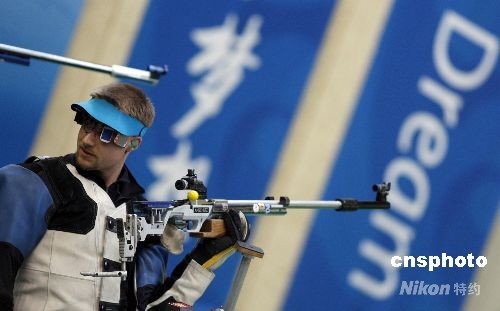 8月17日,男子50米步槍三種姿勢(shì)決賽在北京射擊館進(jìn)行,中國(guó)選手邱健奪得金牌。13:52分,男子步槍三姿第10輪邱健驚天逆轉(zhuǎn)得金牌。本來(lái)以為得到銀牌已經(jīng)是最好的結(jié)果,一直領(lǐng)先的美國(guó)選手埃蒙斯雖沒(méi)有像上一屆奧運(yùn)會(huì)一樣脫靶,但是他最后一槍居然只打出了4.4環(huán),埃蒙斯又一次與奧運(yùn)金牌夢(mèng)想失之交臂。中新社發(fā) 盛佳鵬 攝