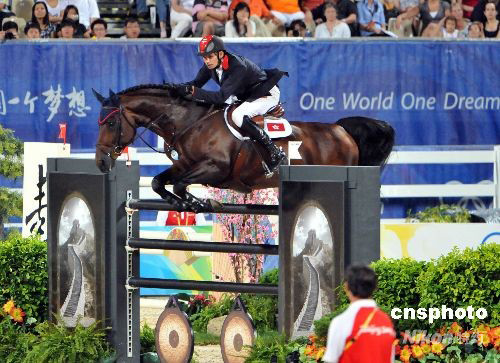 中國選手張濱駕坐騎“科爾蒂斯”上陣,飛躍障礙。 中新社發(fā) 洪少葵 攝