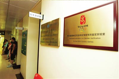 在北京協(xié)和醫(yī)院老樓地下一層,“第29屆奧林匹克運動會指定性別鑒定實驗室”的牌子異常醒目。該實驗室主任、北京奧運會性別鑒定官何方方教授說,為了能夠準確甄別運動員的性別,北京奧運會特別設(shè)立了性別鑒定實驗室,從臨床、性激素、染色體和基因檢測這四個方面,科學(xué)、全面地為運動員做性別鑒定。