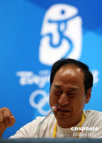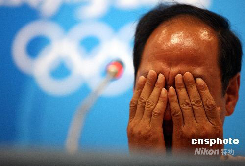 8月18日上午,在北京奧運男子110米欄第1輪第6組比賽中,集十幾億人“寵愛”為一身的中國選手劉翔在第一次起跑后因腿傷遺憾退出比賽。賽后,教練孫海平說道劉翔的傷病與毅力,泣不成聲。中新社發(fā) 任晨鳴 攝