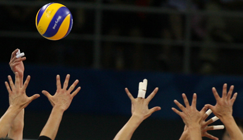 中國隊在北京奧運會男子排球比賽中以3比2戰(zhàn)勝日本隊,提前鎖定8強(qiáng)席位。圖為比賽瞬間。中新社記者 武仲林 攝