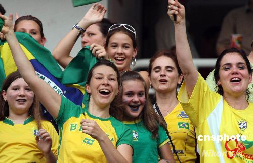 圖為巴西球迷舞桑巴慶祝球隊(duì)晉級(jí)決賽。