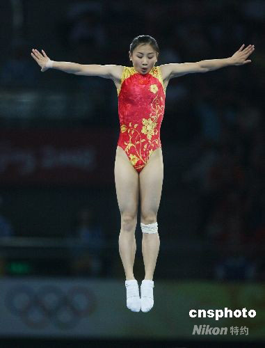 何雯娜在北京奧運(yùn)會(huì)女子蹦床比賽中。中新社發(fā) 武仲林 攝