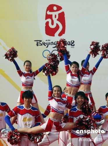 北京2008奧運(yùn)帆船、帆板比賽在青島如期舉行,賽場(chǎng)啦啦隊(duì)的表演為賽事增加了更多的色彩。中新社發(fā) 趙振清 攝