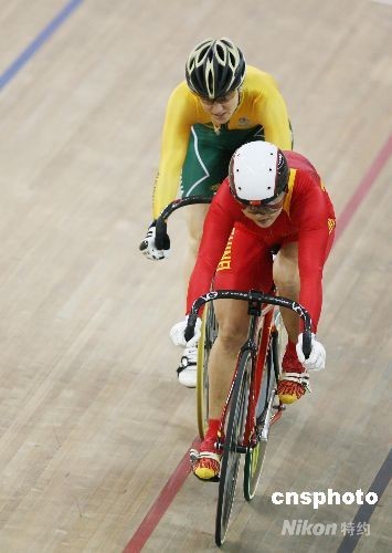 圖:郭爽犯規(guī)無緣自行車女子爭先賽決賽