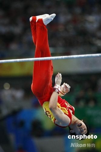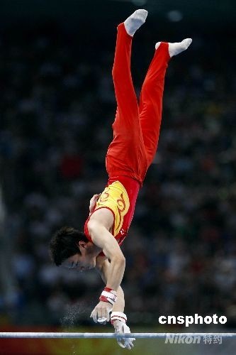 圖:鄒凱奪得奧運(yùn)會體操男子單杠金牌 (2)