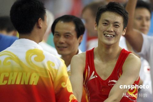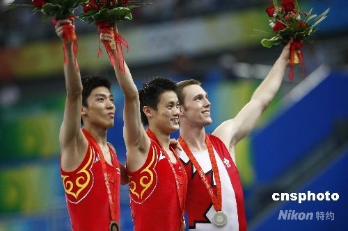 8月19日,中國選手陸春龍奪得北京奧運(yùn)會男子蹦床金牌。中新社發(fā) 盛佳鵬 攝