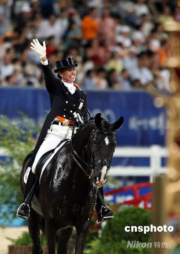 荷蘭選手范格林斯芬獲馬術(shù)盛裝舞步個人賽金牌