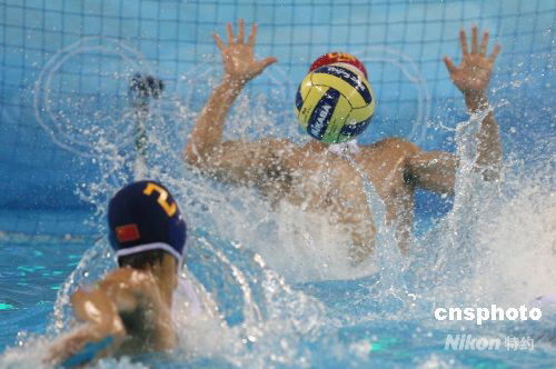 8月20日,中國隊(duì)在奧運(yùn)男子水球四分之一決賽中以8:13負(fù)于希臘隊(duì),無緣四強(qiáng)。圖為比賽精彩瞬間。 中新社發(fā) 武仲林 攝