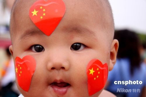 第29屆奧運(yùn)會在北京舉辦,天安門廣場吸引了眾多國內(nèi)外游客 ,四個月的小嬰兒在母親懷抱里綻放出天使般的笑容。中新社發(fā) 張愛東 攝