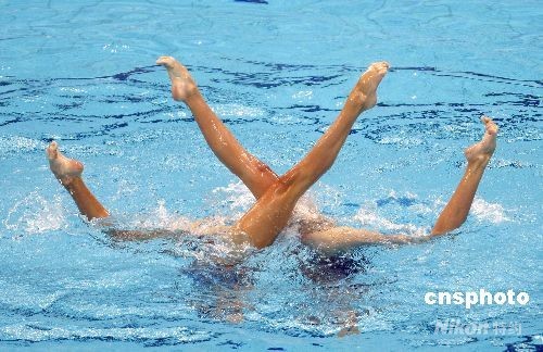 8月20日,北京奧運(yùn)會(huì)花樣游泳雙人項(xiàng)目比賽全部結(jié)束,俄羅斯組合阿納斯塔西婭·達(dá)維多娃/阿納斯塔西婭·葉爾馬科娃以總分99.251分奪金。中新社發(fā) 杜洋 攝